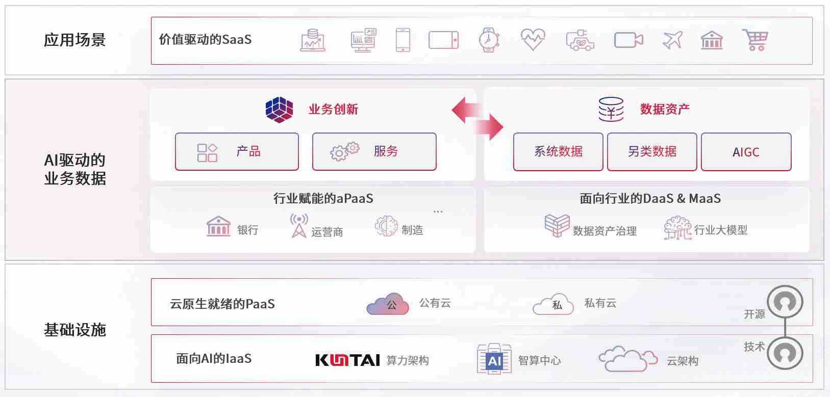 数字时代,,,,围绕企业数字化转型的关键要素,,尊龙数码开创性的提出数云融合战略和技术体系框架,,着力在云原生、、数字原生、、、、AI原生和信创产业上架构产品和服务能力,,,,为处在不同数字化转型阶段的快消零售、、、、汽车、、金融、、、、医疗、、、、政企、、、教育、、运营商等行业客户提供泛在的敏捷IT能力和融合的数据驱动能力,,,,构建跨界融合创新的数字业务场景和新业务模式,,,,助力企业级客户建立面向未来的核心能力和竞争优势,,,全面推动社会的数字化、、、、智能化转型升级。。